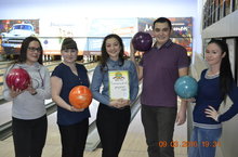 Сегодня в развлекательном центре "Манхеттен" состоялся турнир по боулингу для учителей! В турнире приняли участие 8 школ, в каждой команде по 5 человек. Мероприятие началось с небольшой разминки. В ходе игры каждый участник старался выбить страйк, чтобы набрать наибольшее количество баллов. За каждый выбитый страйк ведущий вручал дополнительные призы. В этом нелегком бою педагоги нашей гимназии во главе с директором заняли достойное 3-е место. Все участники остались довольны. После завершения турнира игру продолжили.