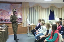 Вчера учащиеся 5А класса после уроков посетили литературный музей имени М.И. Цветаевой. Очень приятный и интересный музей. Ребят встретил солдат, который познакомил с жизнью во времена Великой Отечественной Войны, показал, что солдаты брали с собой, что одевали и как питались.