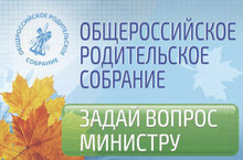Стартовал сбор вопросов к Общероссийском родительскому собранию с участием Министра образования и науки О.Ю.Васильевой.30 августа 2017 года Министр образования и науки РФ Ольга Юрьевна Васильева проведет Общероссийское родительское собрание с участием родителей, учителей, а также представителей общественности, которых волнуют перспективы развития системы школьного образования.Четвертое по счету Общероссийское родительское собрание, как и в предыдущие годы, пройдет в формате видеоконференции с прямыми включениями из регионов России. Благодаря онлайн-трансляции на сайте ведомства следить за мероприятием можно будет из любой точки страны и мира.Для Минобрнауки России Общеросийское родительское собрание - это возможность получить обратную связь, услышать мнение родителей, узнать о наиболее волнующих их вопросах, оценить эффективность реализуемых проектов и программ.Задать свой вопрос Министру можно с уже сейчас. На сайте Минобрнауки России для этого открыт специальный разделhttp://минобрнауки.рф/родительское-собрание. Вопросы, заданные через сайт также найдут свое отражение в ответах Министра. -