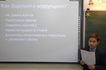 В гимназии прошли мероприятия, приуроченные Международному Дню борьбы с коррупцией: классные часы «Коррупция и методы борьбы с ней», «Нет! – коррупции в стране», встреча с адвокатом Елабужского филиала коллегии адвокатов Тугульской Э.В. на тему «Знаешь ли ты закон?», просмотр и обсуждение видеороликов и презентаций, проведение тематической игры. Ребята подготовили выступления об истории возникновения коррупции и методах борьбы с ней, провели анкетирование.На общешкольном и классных родительских собраниях данный вопрос тоже был поднят в очередной раз администрацией гимназии и классными руководителями. Также перед родителями выступили представители прокуратуры, полиции и наркоконтроля. -