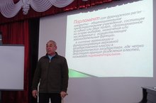В гимназии состоялся Парламентский урок с приглашением помощника депутата Шарафеева Р.К. Учитель истории Черницына О.Н с демонстрацией презентации рассказала о истории развития парламентаризма в России.