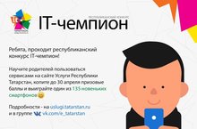 Ребята, проходит республиканский конкурс IT-чемпион. Научите родителей пользоваться сервисами на сайте Услуги Республики Татарстан, копите до 30 апреля призовые баллы и получите один из 135 новеньких смартфонов.