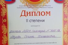 Учитель физической культуры Авдеева Р. Н. получила диплом II степени за участие в муниципальных соревнованиях по стрельбе из пневматической винтовки среди педагогов общеобразовательных учреждений ЕМР, приуроченных 30-летию со Дня вывода войск из Афганистана.