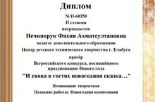 2020 елның 28 декабрендә Нечепорук Ф.А. «ТХТ» берләшмәсе «Яңа елны бәйрәм итүгә багышланган»һәм янә кунакта Яңа ел әкияте... " Бөтенроссия конкурсында призер булды. Котлыйбыз!