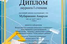 16.10.2024 елда "НТМ" берләшмәсе укучысы Мөбәрәкшин Әмирхан педагог ДО Якушева Т.Г. җитәкчелегендә "һәр баланың уңышы" федераль проекты кысаларында гамәлгә ашырыла торган "Яшь техник-модельче" башлангыч техник модельләштерү һәм конструкцияләүнең Бөтенроссия конкурсында катнашты һәм I дәрәҗә лауреат Дипломын алды.