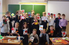 3 мая в СОШ №9 и 4 мая в СОШ №8 педагог ДО Галаванова Т.П. провела выставки, посвященные 71-ой годовщине Победы в ВОВ "Никто не забыт, ничто не забыто. В СОШ №9 участвовали дети 1, 2 и 3 классов, в СОШ №8 приняли участие дети из 4 классов. Работы были выполнены из дерева, картона, цветной бумаги, гофрированной бумаги и бросового материала. Также были сделаны поздравительные открытки для ветеранов войны. Открытка сопровождалась поздравлением: