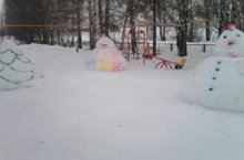 Наши снежные фигуры 12.01.2017 Лепит с самого утра Детвора снеговика. Снежные шары катает И смеясь, соединяет. Cнизу самый крупный ком, Чуть поменьше ком на нём. Ещё меньше – голова, Дотянулися едва. Глазки- шишки, нос морковка. Шапочку надели ловко. Яркий шарф, в руках метла. И довольна детвора.