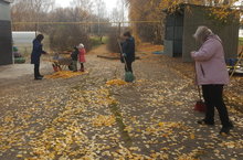 Сегодня сотрудники и детки вышли на уборку территории.