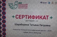 С 3 по 8 ноября 2020 года проводится «Большой этнографический диктант» 2020! Большой этнографический диктант 2020 — это просветительский проект, который знакомит с культурой народов, проживающих в России, а также позволяет оценить общий уровень этнокультурной грамотности. У нас появился отличный повод проверить свои знания культуры России и её народов! Заведующий Парамонова С.А приняла участие в этом проекте.