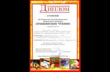 Ученица 10 класса Черепкова Ирина получила Диплом I степени за участие в III Открытом Республиканском творческом конкурсе "Пушкинские чтения" в номинации "Художественное слово, сценическое мастерство".