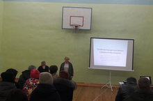 Сегодня в школе прошло общешкольное родительское собрание с соблюдением мер безопасности. Тема собрания: «Профилактика деструктивного поведения обучающихся». Выступал директор школы В.С. Кузьмин, заместитель директора по УР М.З.Гильфанова: об итогах успеваемости в 1 полугодии, заместитель директора по ВР З.К. Сафина: воспитательные вопросы, психолог С.А. Корочкина — про деструктивное поведение учащихся, признаки суицида. / Бүген мәктәптә куркынычсызлык чараларын үтәп ата-аналар җыелышы булып узды. Җыелышның темасы « Укучыларда деструктив тәртипне профилактикалау". Мәктәп директоры В.С. Кузьмин, уку буенча директор урынбасары М. З. Гыйльфанова : беренче яртыеллыкта өлгереш нәтиҗәләре турында; директор урынбасары З. К. Сафина : тәрбия мәсьәләләре, психолог С. А. Корочкина — укучыларның деструктив тәртибе, суицид билгеләре турында чыгыш ясады.