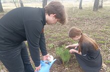 Наша школа присоединилась к акции "Сад памяти". Учащиеся 7,9 классов высадили саженцы сосен в память о героях Великой Отечественной войны./ Безнең мәктәп "Хәтер бакчасы" акциясенә кушылды. 7,9 класс укучылары Бөек Ватан сугышы геройлары истәлегенә нарат үсентеләре утырттылар