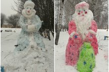Территорию школы украшают снежные фигуры Дед Мороз и Снегурочка, сделанные учащимися 7-11 классов / Мәктәп территориясен 7-11 сыйныф укучылары ясаган кар фигуралары Кыш Бабай һәм Кар кызы бизи