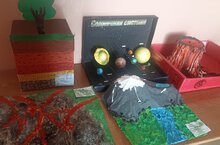 Конкурс географических моделей проходит в нашей школе в рамках предметной недели. Ребята изготовили модели солнечной системы, вулканов, гор,почвенного профиля. Использовали разнообразные материалы: бумагу, гипс, картон, воздушный пластилин./ Мәктәптә предмет атнасы кысаларында географик модельләр конкурсы уза. Балалар кояш системасын, вулканнар, таулар, туфрак профиле модельләрен ясаганнар. Алар кәгазь, гипс, картон, һава пластилинын кулланганнар.