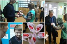 1 декабря — Всемирный день борьбы против СПИДа - чумы двух столетий. Это страшное, неизлечимое заболевание. Школьное ученическое самоуправление "Единство" встречал учащихся с красной лентой и листовкой. -