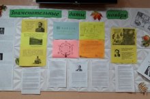 Ученическое самоуправление школы каждый месяц обновляет стенд на втором этаже. И на этот месяц стенд называется "Знаменательные даты ноября": -