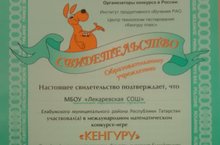 Миллионам ребят во многих странах мира давно уже не надо объяснять, что такое «Кенгуру», — это массовый международный математический конкурс-игра под девизом «Математика для всех». Главная цель конкурса — привлечь как можно больше ребят к решению математических задач, показать каждому школьнику, что обдумывание задачи может быть делом живым, увлекательным, и даже веселым!Международная математическая игра-конкурс "Кенгуру-2017" проводилась 16 марта 2017 года. 10 учащихся нашей школы приняли участие в самом массовом математическом соревновании школьников в мире. Все участники награждены сертификатами. Молодцы! Поздравляем! -
