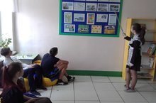 Бүген булды КВН –Гаҗәп күңелле уен!Укучылар көч сынашты,Менә тамашабулды.Бүген, ягъни 28нче апрель көнне 5-8 сыныфлар арасында туган телне яратучылар өчен викторина узды. Укучылар ике командага бүленделәр: “Дуслар” һәм “Күбәләкләр” командасына. Викторина барышында укучылар табышмакларга җаваплар уйладылар, төрле уеннар: “Кызыклы сораулар”, “ Бу кем”һ.б. уйнадылар. Габдулла Тукайның тормыш юлы һәм иҗаты буенча тест сорауларына җавап бирделәр, рәсемнәр буенча әсәрнең исемен атадылар, кроссводлар чиштеләр. Викторина күңелле, мавыктыргыч һәм укучылар өчен файдалы үтте дип уйлыйм. -