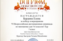 Ученица нашей школы участвовала в дистанционной олимпиаде по математике.