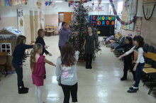 Мәктәптә балалар өчен чыршы янында уеннар, биюләр.