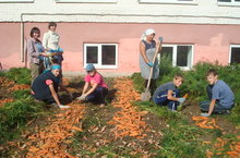 Осенью труды ребят и учителей награждаются хорошим урожаем. Сегодня был организован субботник по уборке урожая, выращенного на пришкольном участке ребятами и учителями нашей школы.Җәй буе хезмәт куйдык безМәктәп яны бакчада.Кишерләр, чөгендерләрШуңа мул булды анда! -