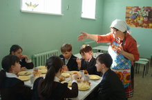 В 6 классе прошёл необычный урок английского языка. Дети готовили английские блюда, рассказывали стихи, пели песни, делились рецептами .Этот урок научил детей диалогической и монологической речи, развил умение самостоятельно строить беседу с использованием выражений и речевых образцов. Образовательная цель учит ребят вести себя культурно за столом,правильно обращаться со столовыми приборами.