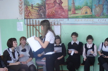 ГКУ "Центр занятости населения г.Елабуга" вместе со студентами КФУ психологического факультета провели в школе профориентационное занятие на тему "Моя будущая профессия". Занятие проводилось в виде игры - беседы. Началось занятие с знакомства. Затем дети были разделены на команды. Были затронуты профессии, которые престижные, новые, востребованные, редкие на рынке труда.Где можно узнать о профессия?(рекламы, интернет, родители...). Провели тестирование, после которого можно было узнать, к какому типу профессии они относятся. Например, человек - человек (врач,юрист, преподаватель), человек - техника ( электрогазосварщик, водитель), человек - знаковая система ( бухгалтер, оператор ПК), человек - природа (агроном, животновод).