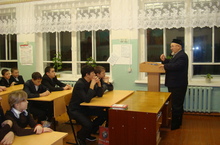 Бүген мәктәптә авылыбыз хәзрәте укучылар алдында бик матур чыгыш ясады. Хәйдәр хәзрәт бик кызыклы тарих вакыйгалары, истәлекләр турында сөйләде, коръән турында кирәкле мәгълүмәтләр белән таныштырды. Барлык укучылар һәм укытучылар бу очрашудан канәгать калдылар. Хәйдәр хәзрәт белән әле алда да очрашулар булачак...