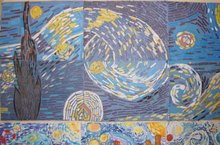 Учащиеся Б2 класса (преподаватель Шакирова Л.Ф.) создали коллективную работу в технике аппликация по мотивам работы Ван Гога "Звёздная ночь".