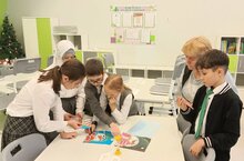 | У нас учат: | 79 учителей, языки обучения: русский, татарский, английский |