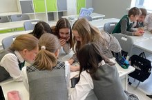 Учащиеся 8-х классов полилингвального образовательного комплекса "Адымнар-Алабуга" приняли участие в интеллектуальной игре "Что? Где? Когда?" В ходе игры команды "Молодежь будущего поколения" и "Юные наследники Татарстана" искали ответы на вопросы, подготовленные учащимися Гимназии № 2 города Елабуга. Игра завершилась в пользу команды "Юные наследники Татарстана".