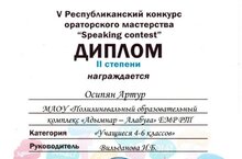 Сегодня в Полилингвальном образовательном комплексе "Адымнар-Алабуга" состоялся турнир по английскому языку "A magic trip to English land" среди 2ых классов. Ребята выполняли задания и отвечали на разные вопросы. После этого были подведены итоги и распределены призовые места.
