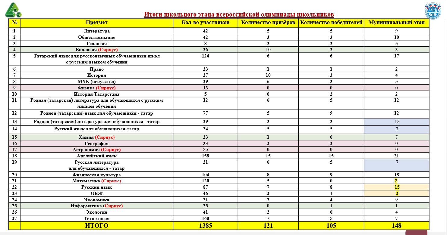 Итоги муниципального этапа ВсОШ