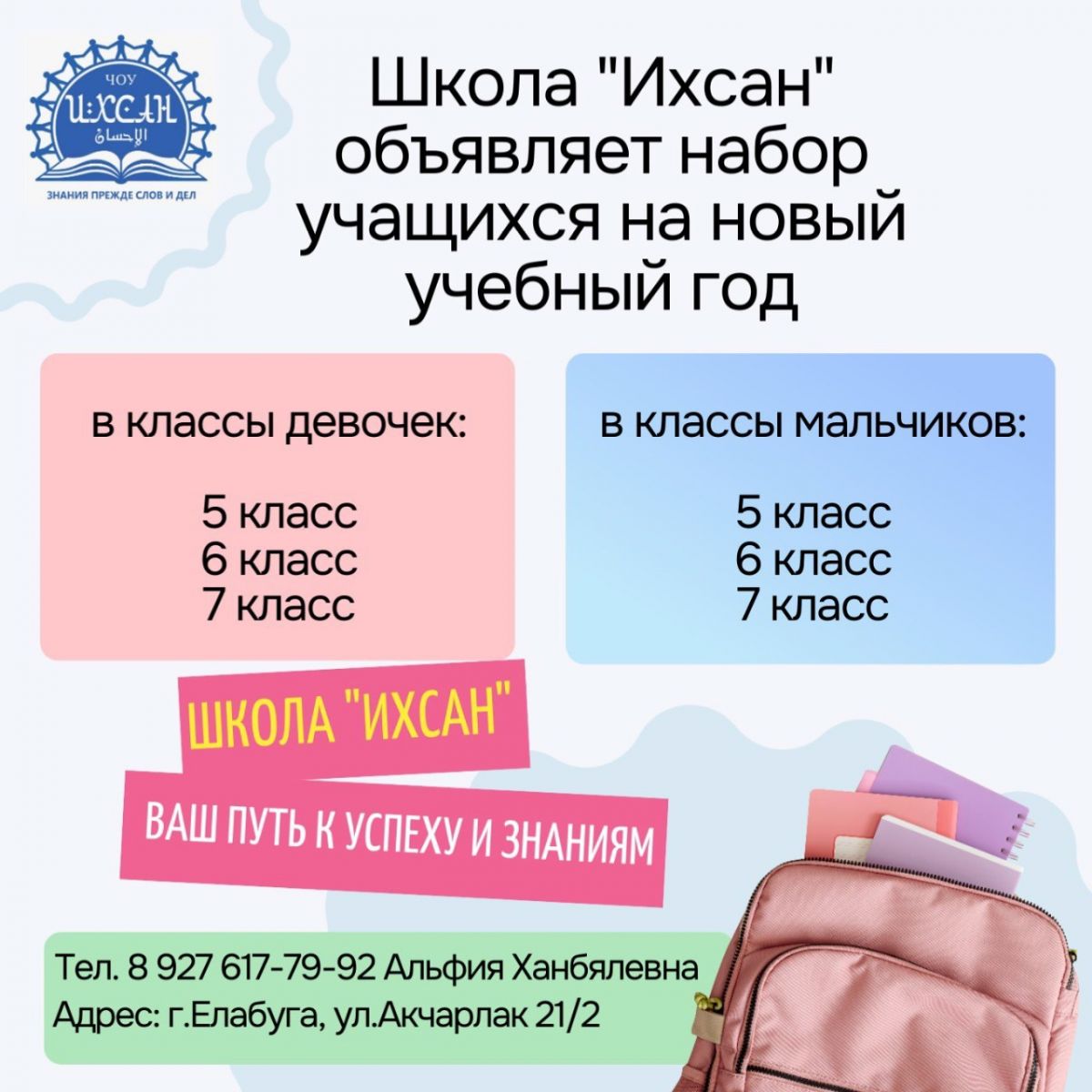 Частное общеобразовательное учреждение «Средняя общеобразовательная школа «Ихсан» (Благонравие)» г. Елабуга - новости