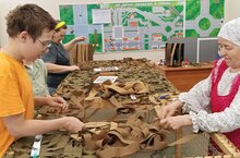 Волонтёры общественного движения «Дома ждут» проводят занятия по созданию маскировочных сетей для реабилитантов, родителей и сотрудников. Опытные мастера, такие как Кадрия Набиуллина, демонстрируют основы искусства плетения маскировочных сетей, поясняя необходимость соблюдения правильной технологии.