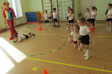 Сегодня, 17.03.16 г., средняя группа «Смешарики», играя с веселым клоуном, проявляли смекалку, ловкость, силу, быстроту и прыгучесть в эстафетах с предметами и без предметов. Победила дружба!