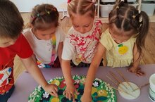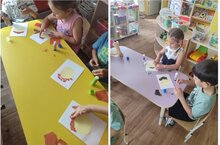 В старшей группе №13, создавая красивые аппликации своими руками, видя результат своей работы, дети испытывают положительные эмоции. Работа с бумагой даёт возможность детям проявить терпение, упорство, фантазию и художественный вкус, проявить творческие способности, приобрести ручную умелость, которая позволяет им чувствовать себя самостоятельными. Все это благотворно влияет на формирование здоровой и гармонично развитой личности.Кисеп ябыштыру – бик мавыктыргыч шөгыль һәм, өстәвенә, шактый файдалы эш.13 нче номерлы өлкән төркемдә үз куллары белән матур аппликацияләр ясап, эш нәтиҗәләрен күреп, балалар уңай хисләр кичерә. Кәгазь белән эшләү балаларга сабырлык, үҗәтлек, фантазия һәм сәнгати зәвык күрсәтергә, иҗади сәләтләрен күрсәтергә, үзләрен мөстәкыйль хис итәргә мөмкинлек бирә торган кул осталыгына ирешергә мөмкинлек бирә. Болар барысы да сәламәт һәм гармонияле үсеш алган шәхес формалашуга уңай йогынты ясый.Application is a fascinating activity and, moreover, very useful.In the senior group No. 13, creating beautiful applications with their own hands, seeing the result of their work, children experience positive emotions. Working with paper gives children the opportunity to show patience, perseverance, imagination and artistic taste, show creativity, acquire manual skills that allow them to feel independent. All this has a beneficial effect on the formation of a healthy and harmoniously developed personality -