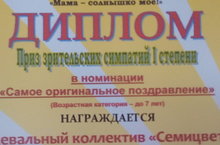 Безнең балалар бакчасында тәрбияләнүчеләр Әниләр көненә багышланган “Әниемә бүләк” дип исемләнгән балалар иҗаты региональ бәйгесеннән бик күп дипломнар алып кайттылар. Әлеге казанышларга кечкенә артистларны музыка җитәкчеләре Быстрова Елена Алексеевна һәм Елизарова Елена Анатольевна җиткерделәр.