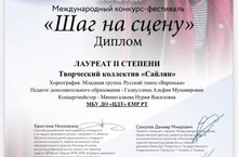 Поздравляем творческий коллектив «Сайлян», под руководством педагога Галиуллиной А.М. и концертмейстера Миннегалиевой Н.В., с победой в международном конкурсе-фестивале «Шаг на сцену».