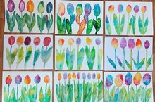 Учащиеся объединения в этой технике выполнили открытки к 8 марта «Цветы весны».