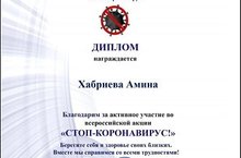 Учащаяся объединения «Спортивные танцы» (руководитель Вешкина В.Н.) Хабриева Амина участвовала во Всероссийской акции «Стоп – коронавирус!»