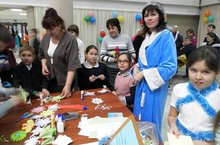 Сегодня в нашем Центре царило необычное оживление. Дети и взрослые с самого утра участвовали в каникулярных тематических мероприятиях, организованных для всех желающих. Выглянувшее, наконец, солнце осветило зимний сад, где были выставлены произведения диковинного ещё для наших мест искусства Бонсай: переплетенные стволы фикусов, изящно оформленные кроны китайской розы, мини ландшафты из лесного мха и речных булыжников.