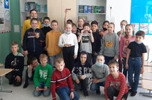 "Яшь эколог" берләшмәсе укучылары педагог Минәхмәтова Әлфия Камил кызы җитәкчелегендә дәрестә "Тынычлык күгәрчене Җиңү көненә!" дигән кул эшләнмәләрен ясадылар, урам акциясе үткәрделәр, үтеп баручыларга үз күгәрченнәрен тараттылар.