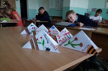 "Письмо Победы" написали и красиво оформили воспитанники объединения "Природа и фантазия" под руководством Столяровой Г.Р. Эти "письма в прошлое" были написаны в рамках Республиканского проекта "Шаги Победы" членам своих семей, принимавших участие в Великой Отечественной войне. С учащимися "СОШ №4" и "СОШ №8" была проведена беседа о том, насколько жизненно необходимо получать весточки от родных и близких людей во время войны.