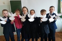 В объединении "Юный натуралист" педагогом Добровой С.М. были проведены патриотические уроки на тему "Дети - герои Великой Отечественной войны". Школьники узнали о том, что защищать Родину были готовы не только взрослые, солдаты, но и дети. Учащиеся своими руками сделали поделки, подготовили сообщения о героях войны и выступили с ними перед одноклассиками. На уроке были изготовлены голуби мира, которых дети прикрепили к макету земного шара.