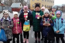 Воспитанники объединения "Цветоводство" под руководством Михайловой Н. сегодня поздравляли всех мам на улицах города!