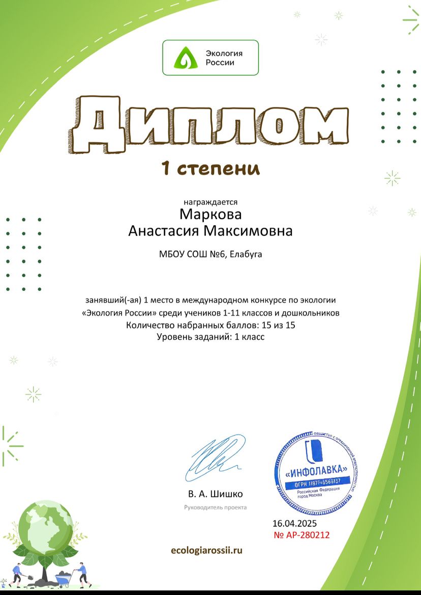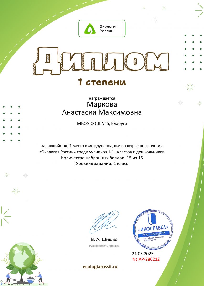 Маркова Анастасия диплом 1 ст международный конкурс Экология России.jpg