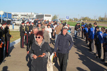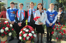 Сегодня с 6 часов утра студенты политехнического колледжа раздавали ленточки рабочим и служащим станкоинструментального завода ОАО «ПО ЕлАЗ».