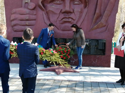 По окончании митинга к вечному огню была возложена корзина с цветами.