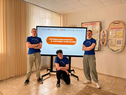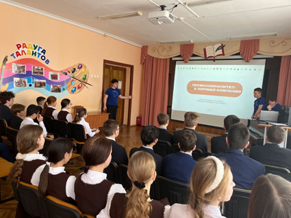 Опубликовано: 18.04.2024Организована встреча студентов ГАПОУ «Елабужский политехнический колледж» - амбассадоров Профессионалитета с учащимися 8-9 классов МБОУ «Гимназии № 4», где студенты-амбассадоры знакомили школьников с федеральным проектом «Профессионалитет», подробно рассказывая о профессиях и специальностях, реализуемых в колледже.